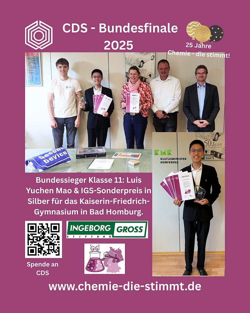Wir drücken ihm die Daumen für weitere Erfolge bei der Internationalen Chemie-Olympiade und dem wünschen „Chemie die stimmt!“ für die nächsten Vierteljahrhunderte alles Gute.